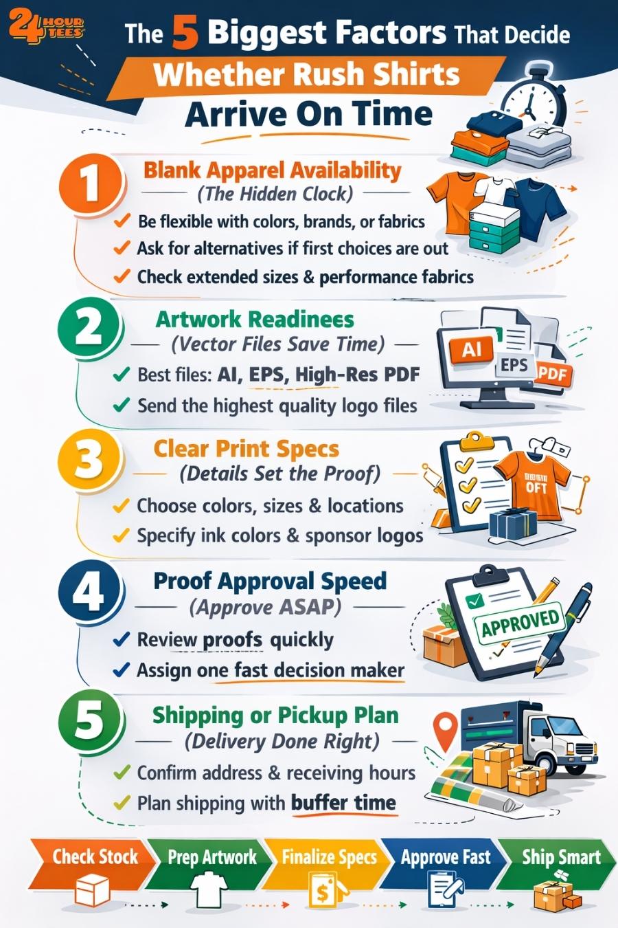 The 5 biggest factors that decide whether rush shirts arrive on time ✅