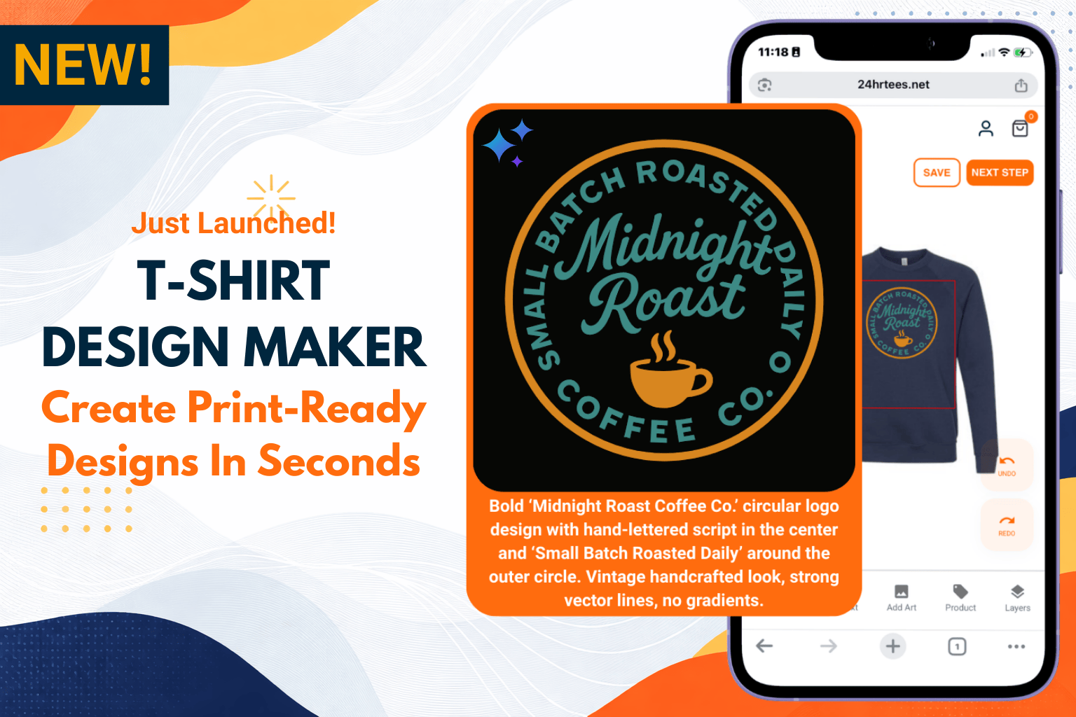 Create your own designs with our 24 Hour Tees® Online Designer!