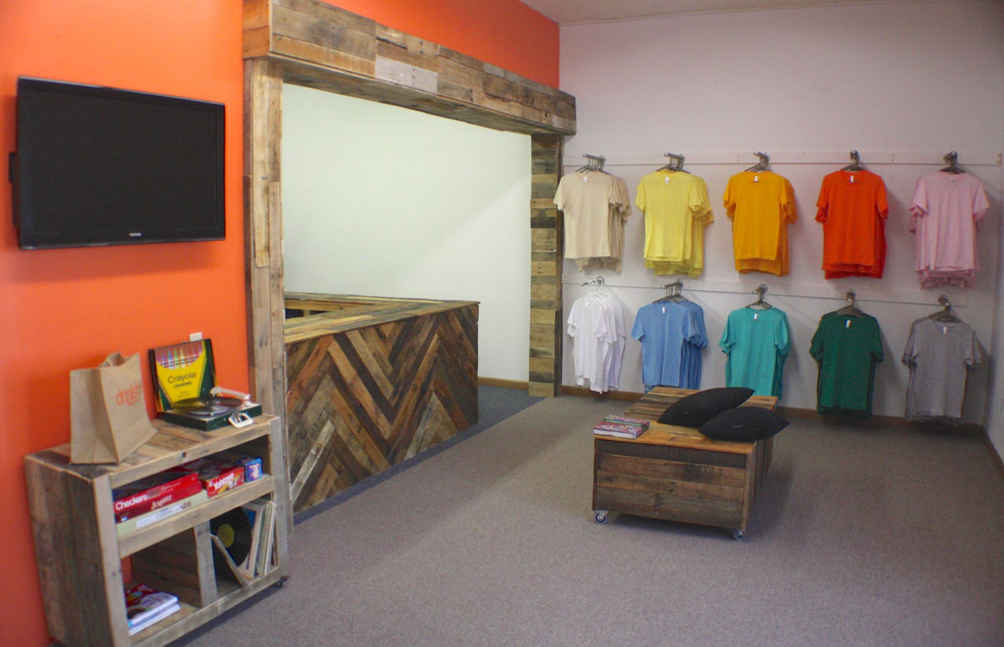 We keep hundreds of items, per size, per color of the two t-shirts styles we stock, so there's zero delay in printing or shipping.
